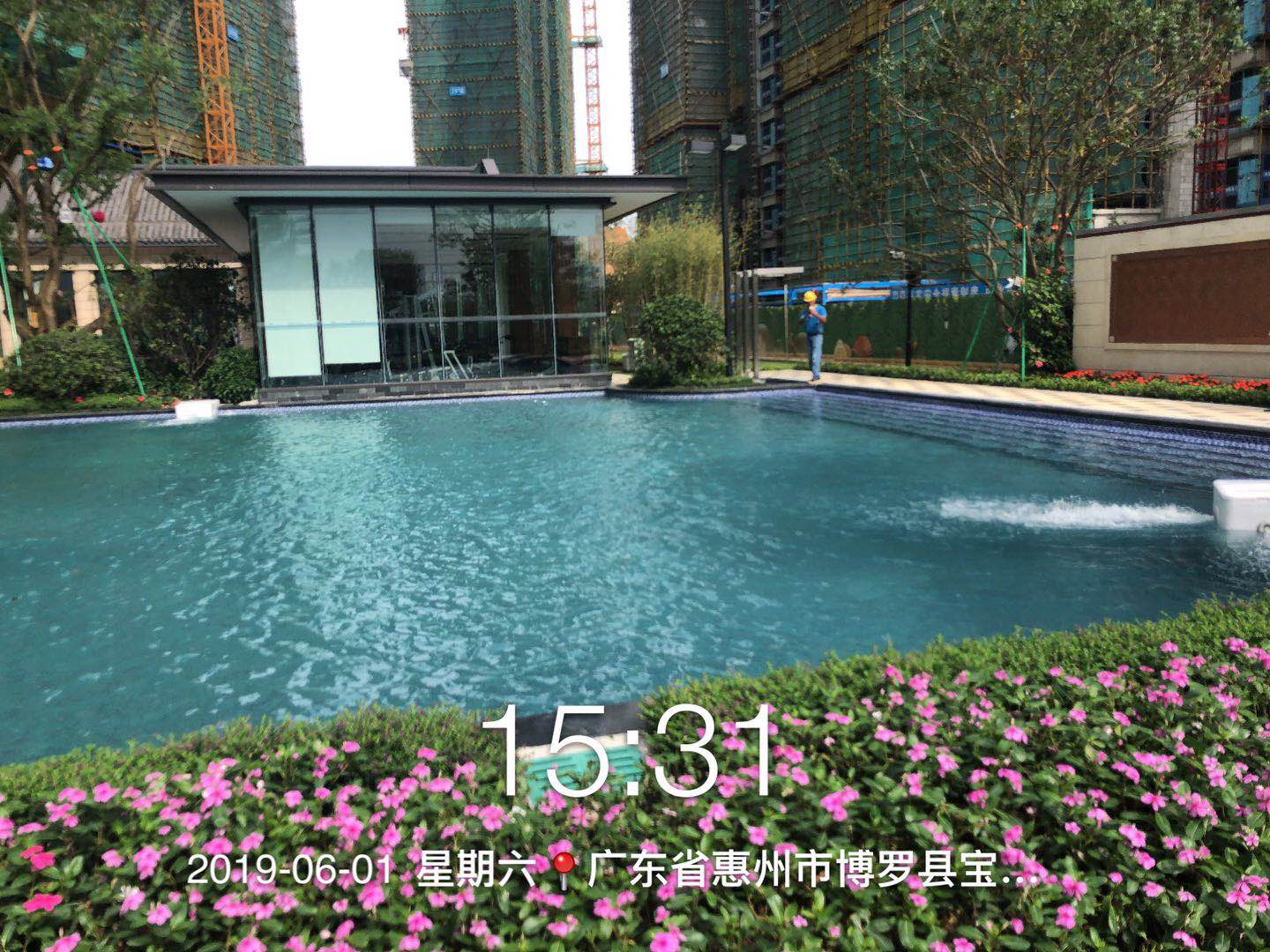 經過公司各級領導及雄厚的技術實力,完善的服務體系,精心細致制造于2019年6月1日惠州方圓東江月島泳池竣工啦!