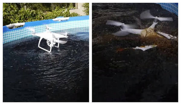 他還啟動無人機(jī)拍攝這一“奇景”,不料無人機(jī)“墜毀”在可樂池里。